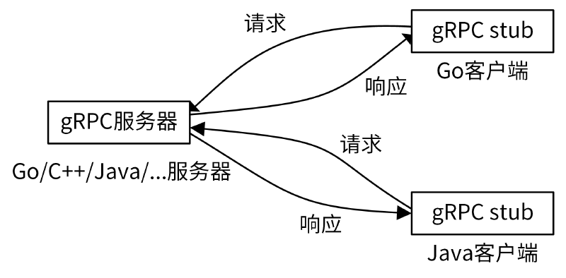 gRPC支持多种语言,比如我们可以用Go语言实现gRPC服务,并通过Java语言客户端调用gRPC服务所提供的方法。通过多语言支持,我们编写的gRPC服务能满足客户端多语言的需求。