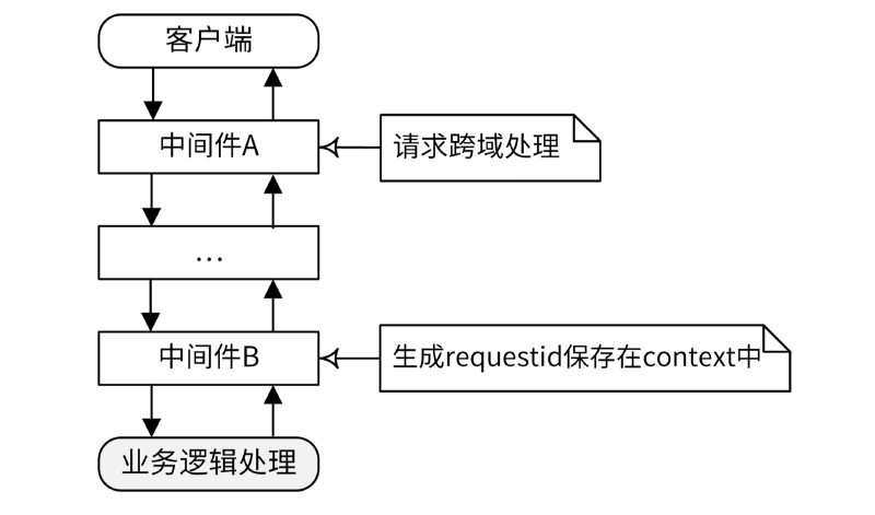 在进行HTTP请求时,经常需要针对每一次请求都设置一些通用的操作,比如添加Header、添加RequestID、统计请求次数等,这就要求我们的Web服务能够支持中间件特性。