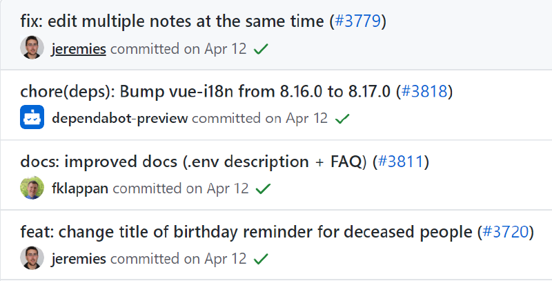 通过上面 2 张图,我们可以看到符合 Angular Commit Message 规范的 commit 都是有一定格式,有一定语义的。