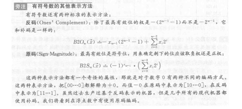 有符号数还有两种表示形式:反码(ones’-complement )和源码(sign-magnitude)。